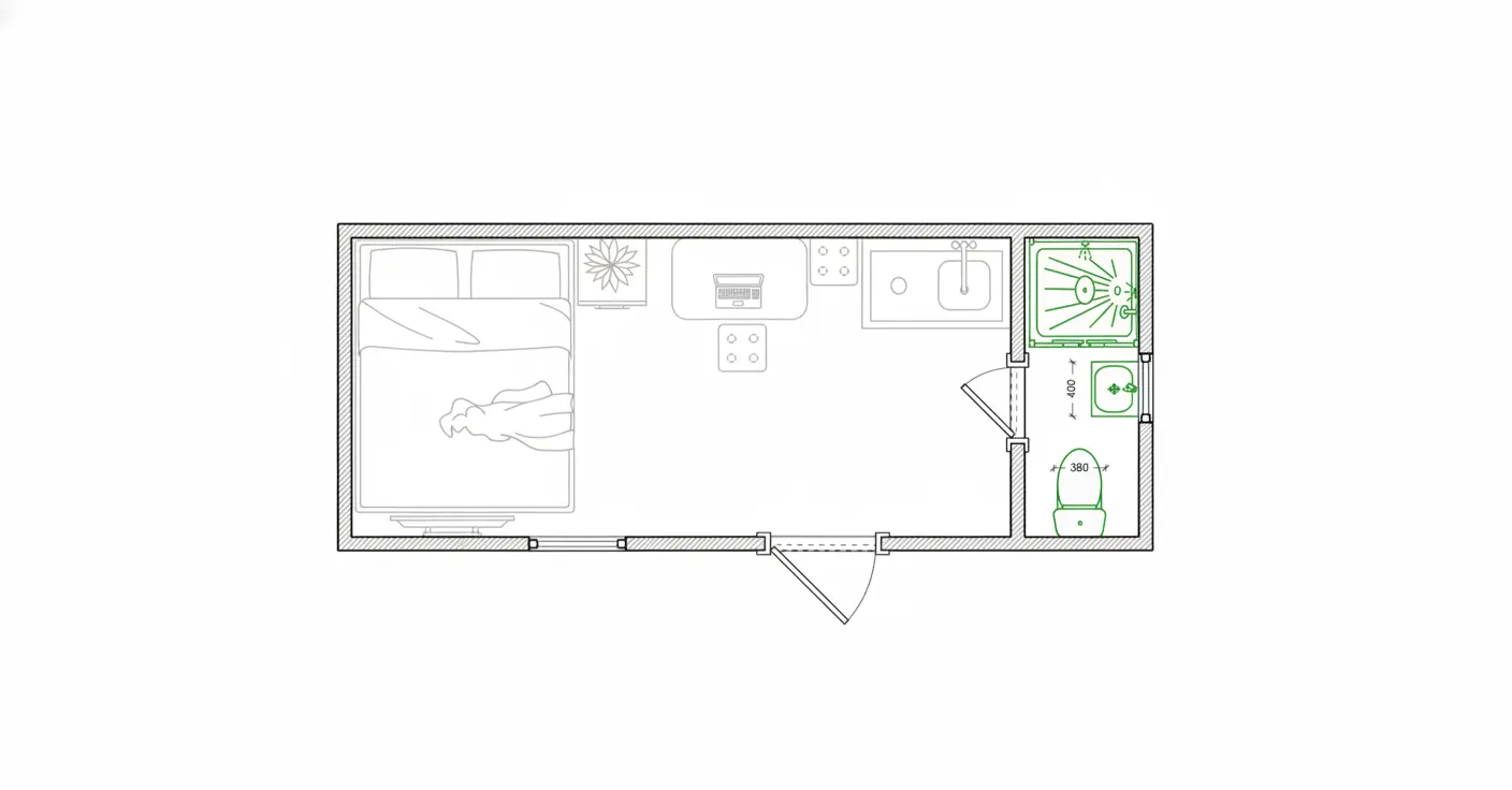 Жилая часть 14.4 м2 или 18 м2