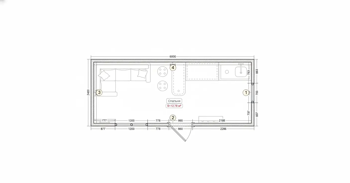- Дополнительная перегородка с межкомнатной дверью под с/у, тамбур или комнату