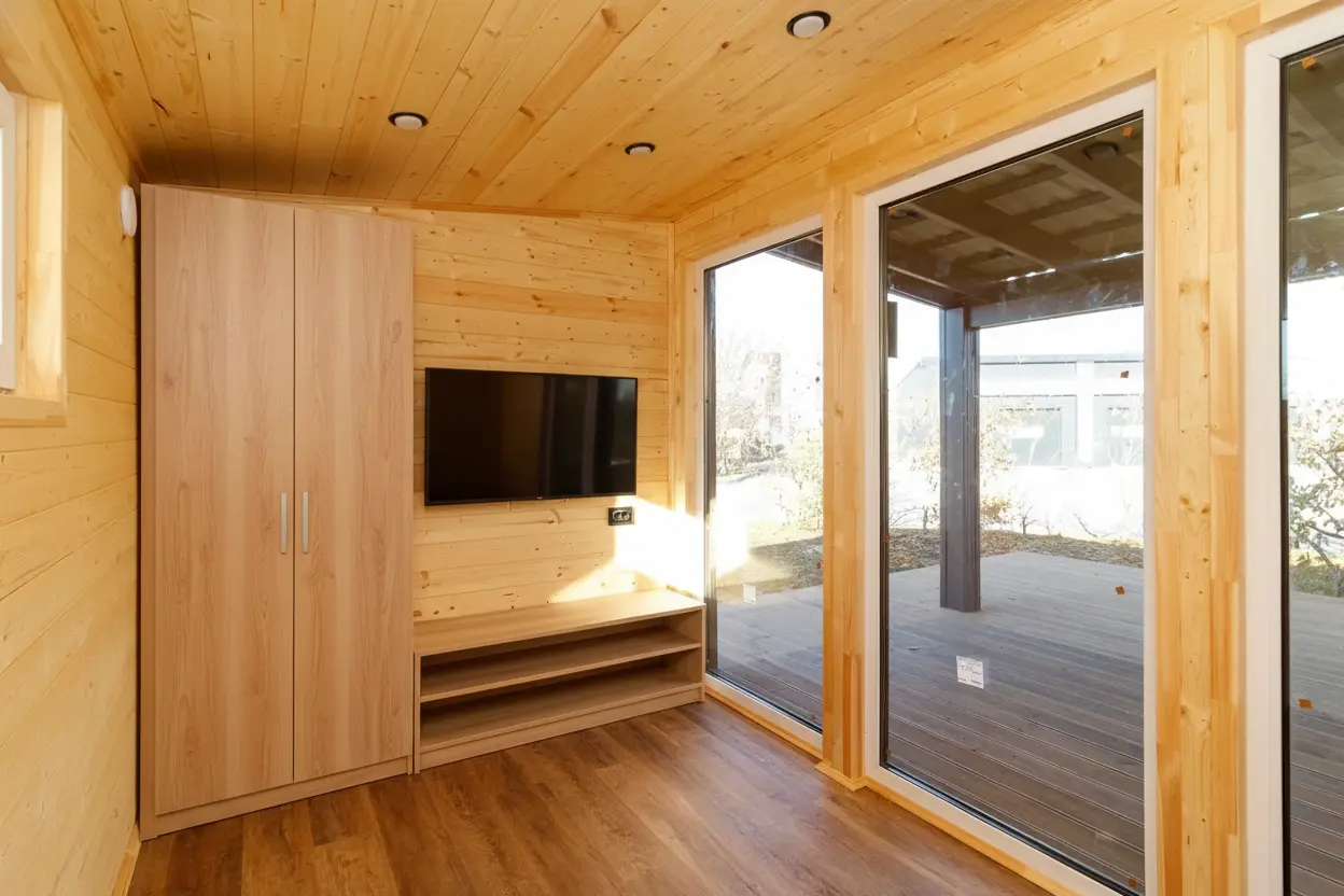 - Напольное покрытие жилой части: ОСБ 22 + spc ламинат «Дуб Париж»