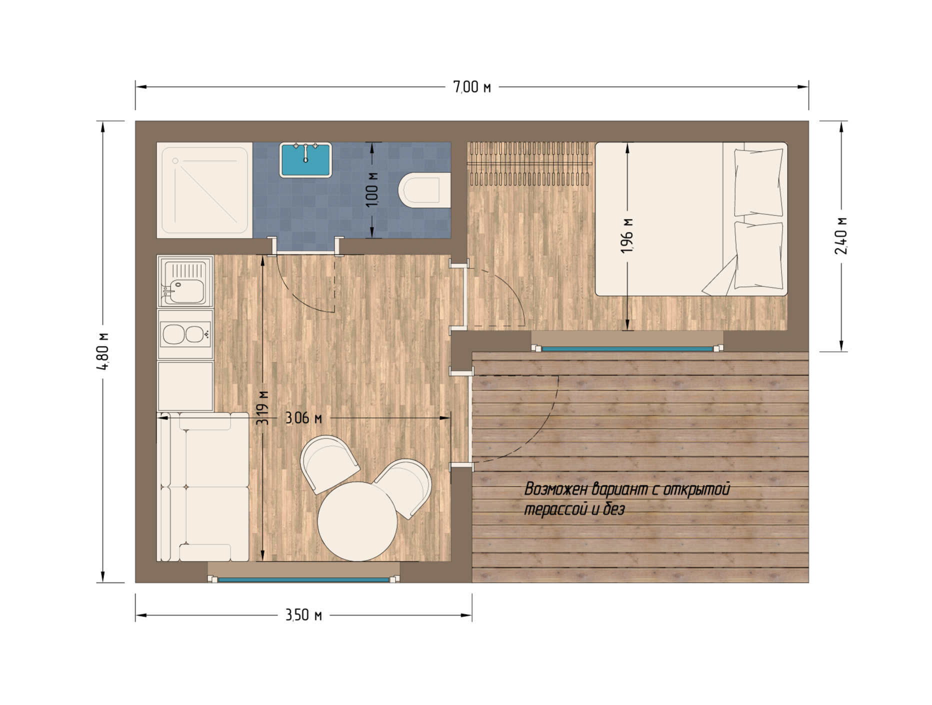 Веранда 3х2.4 - 7.2 м2